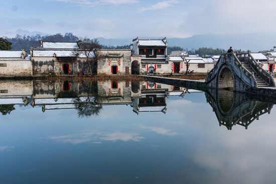 你可以清晨去村邊的月沼漫步,晨光下,看著纖柔的荷葉和碧波中黑白分明的建筑的倒影,足以讓你把這個春節過成一首雋永的詩歌。